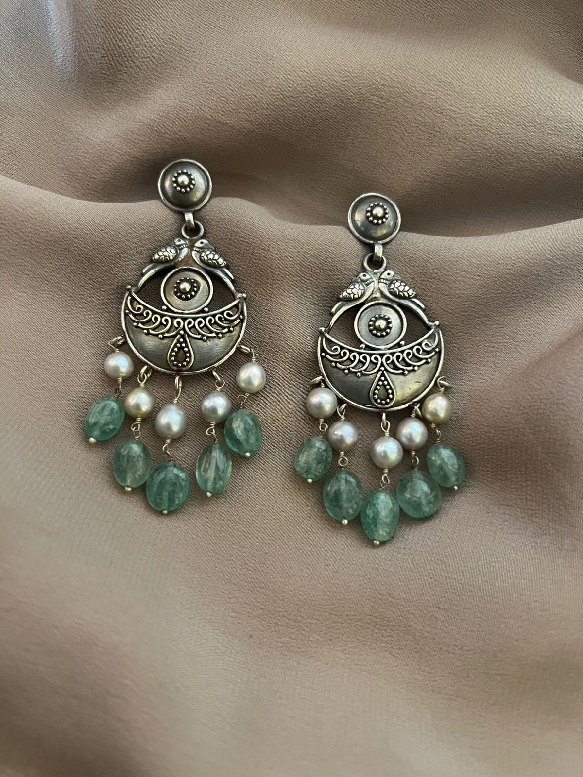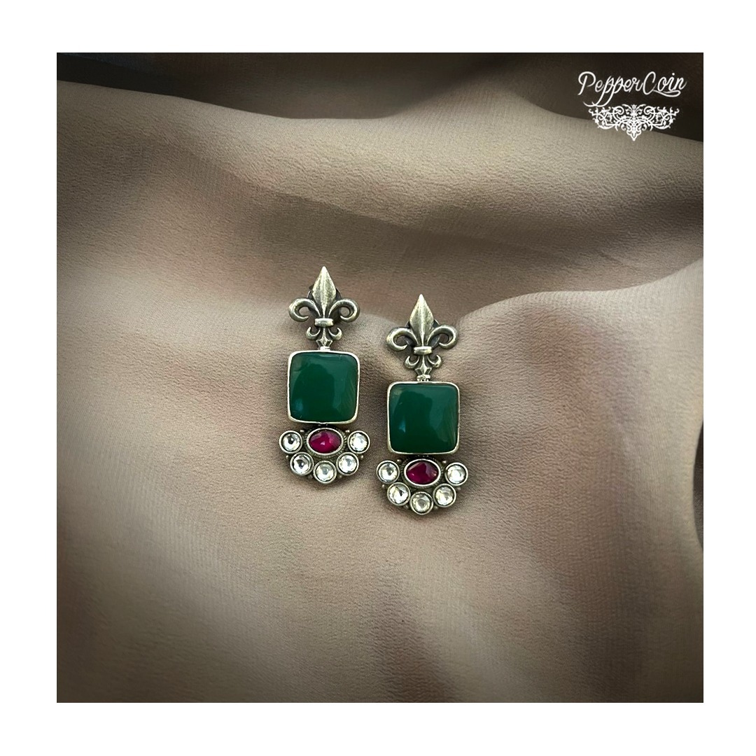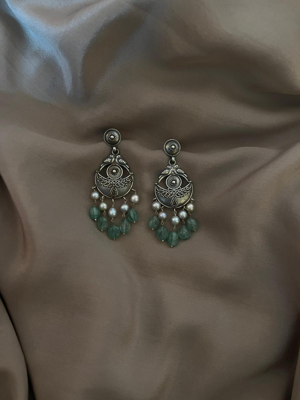 Nazm Collection Amalgamation of old and new world Fastening : Stud Length : 8.5cm Width : .8cm Material : 92.5 Silver Stone