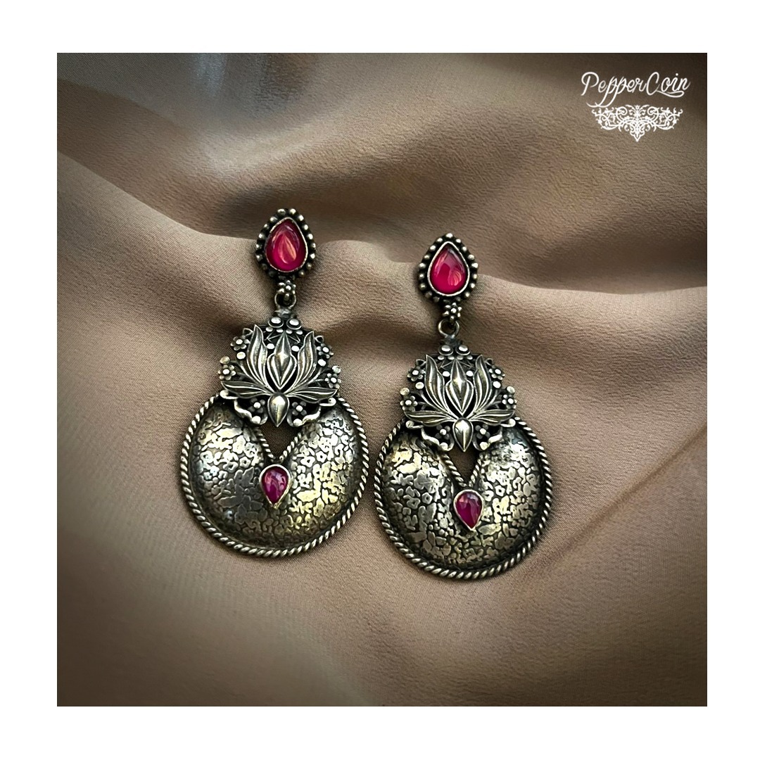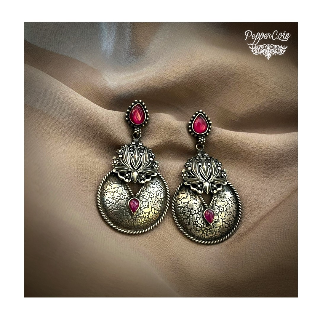 Beautiful Hand printed silver ear rings Length: 5.5 cm Width: 2 cm(Top) Weight:14.1 gm Fastening: Push Back 92.5 Silver hallmarked