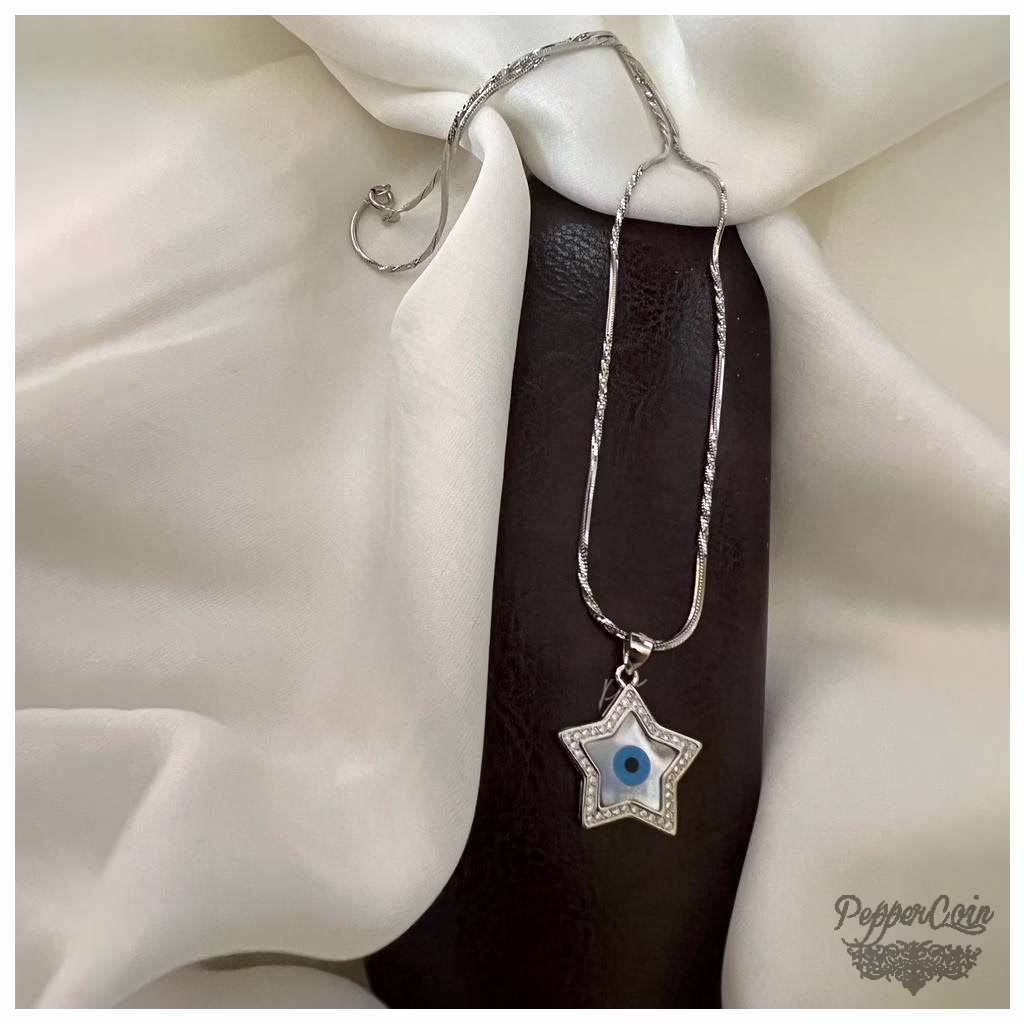 Mother of pearl evil eye silver neck chain with zircon comes with chain perfect for everyday wear.