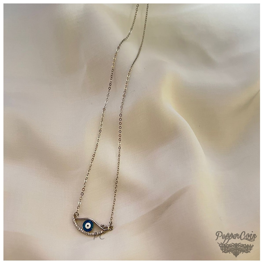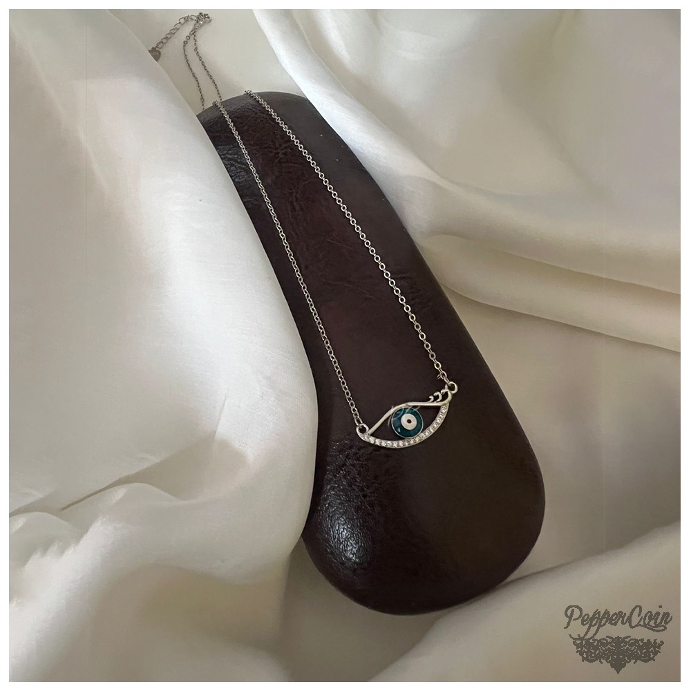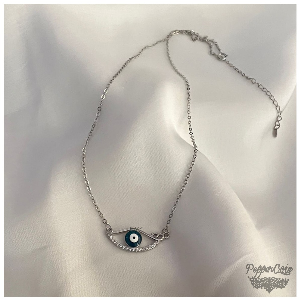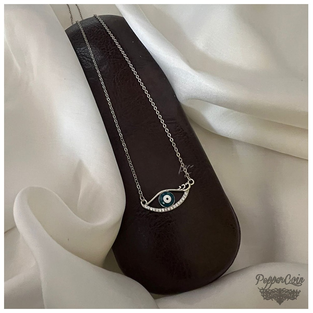 Lightweight evil eye silver neck chain for everyday wear. Length: 16 inches long along with half inch extra link to adjust length