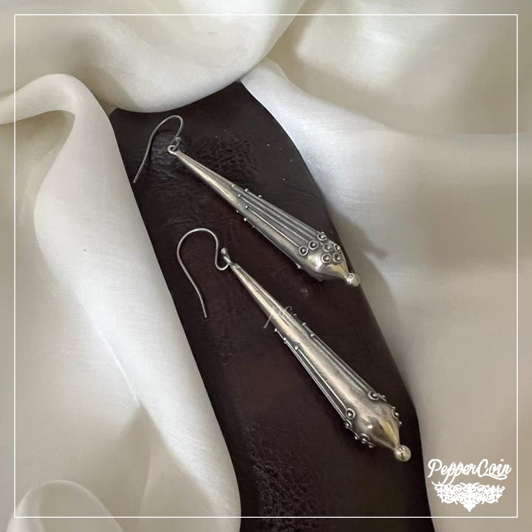 Length: 3 Inches Weight: 25.1 Gram Fastening: Stud Material: 92.5 Silver Status: Available Care : Keep away from fragrance and moisture. Sliver
