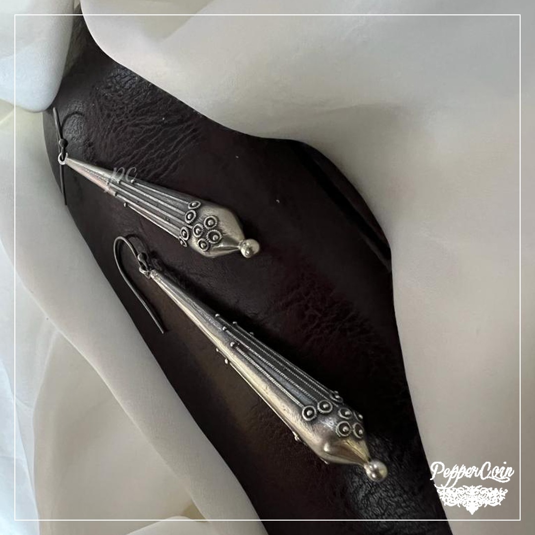 Beautiful Jali Work Done in Silver Weight: 9.3 Grams Length: 4.2 cm Fastening: Stud Material: 92.5 Silver Status: Available Care : Keep