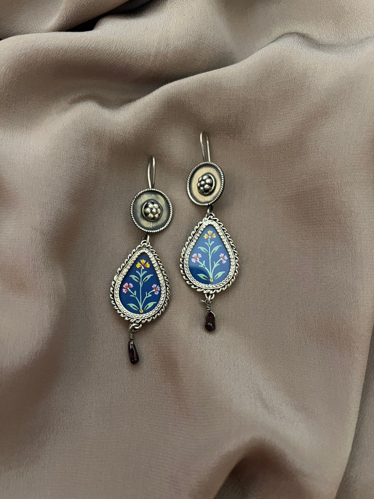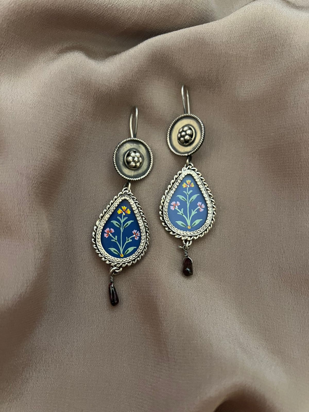 Beautiful Hand printed silver ear rings