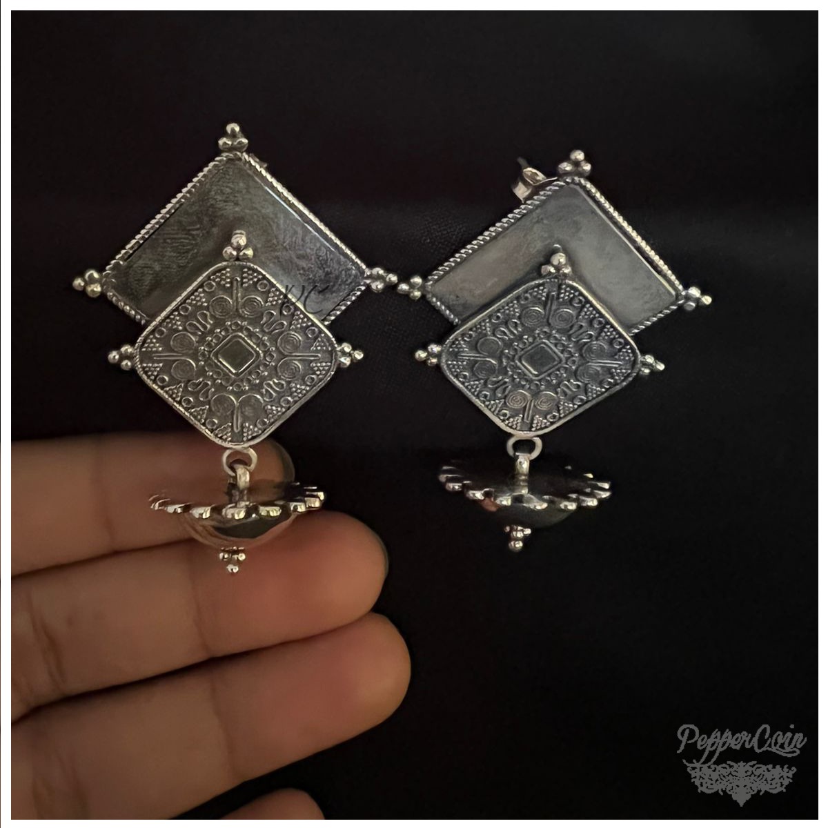 Length: 3 Inches Weight: 25.1 Gram Fastening: Stud Material: 92.5 Silver Status: Available Care : Keep away from fragrance and moisture. Sliver