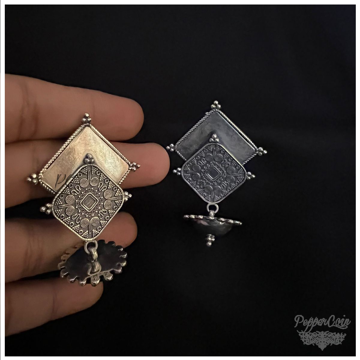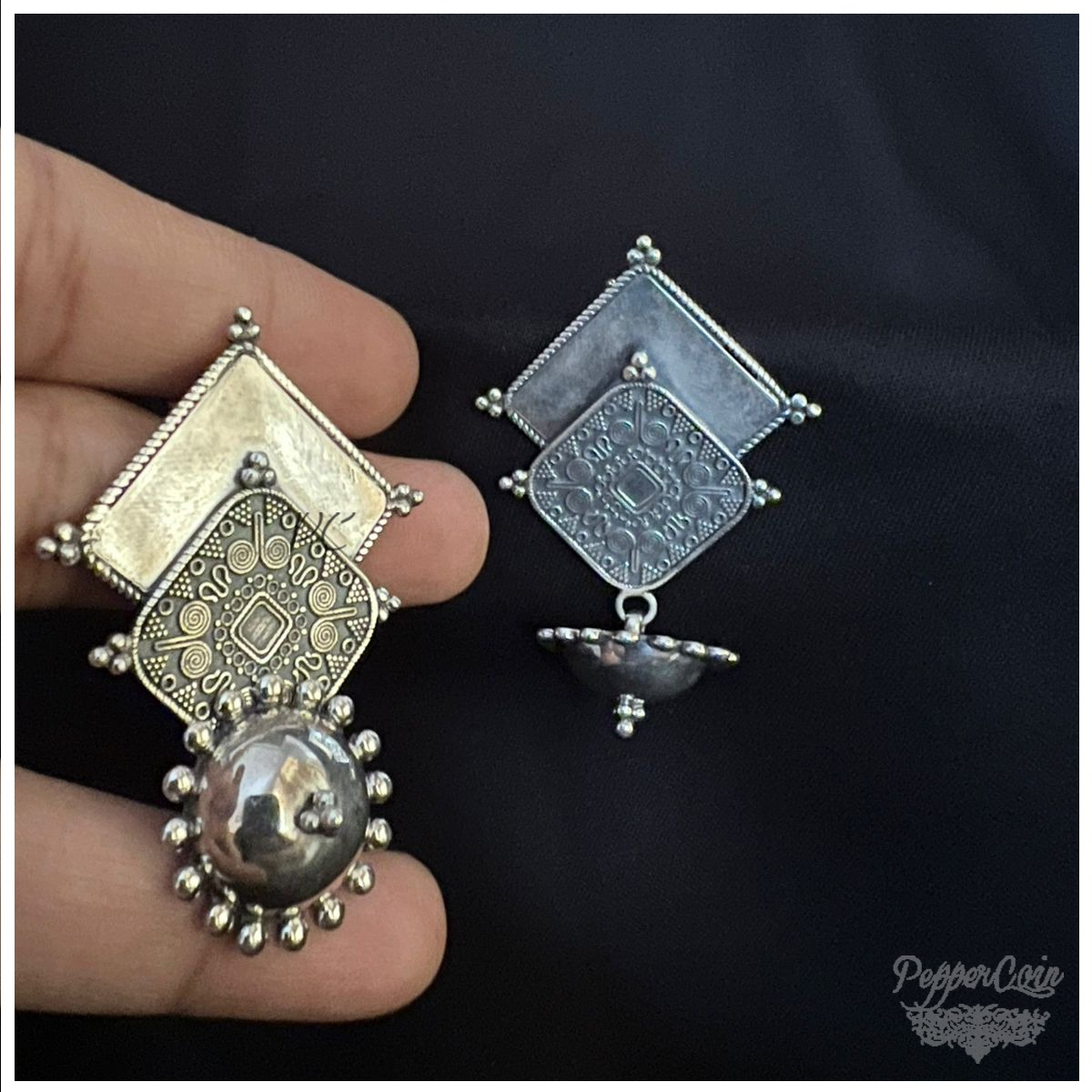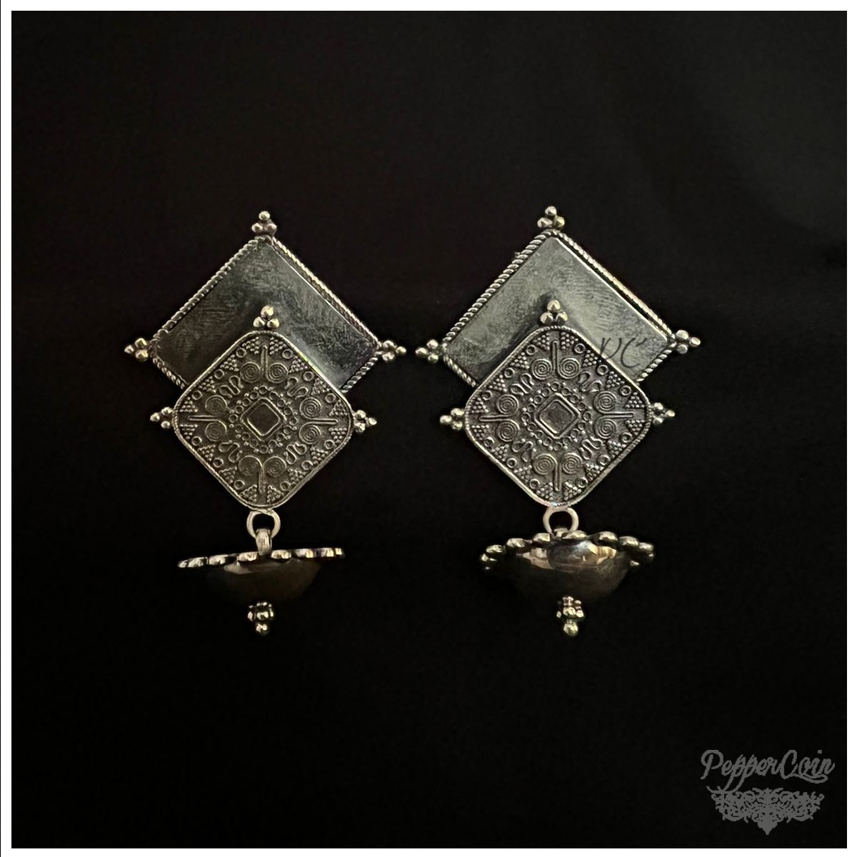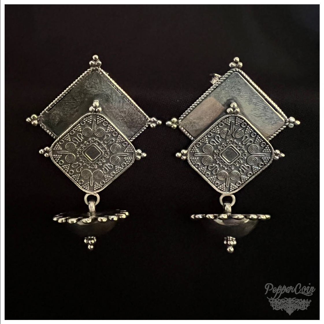 One of a kind silver earrings with hanging bottom and some magic of dana work.