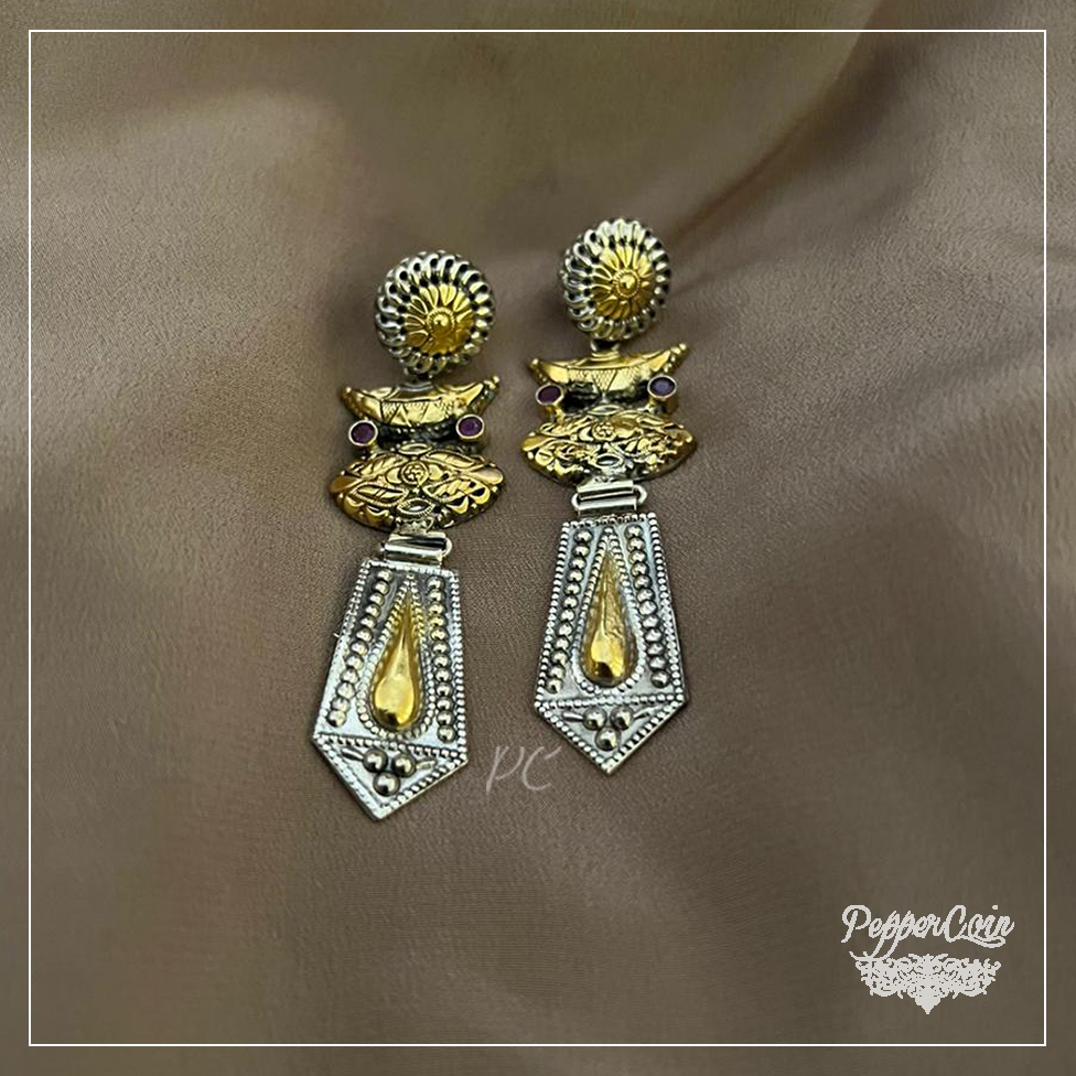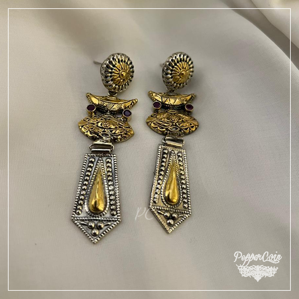 Dual Tone One Of a kind Silver Earrings Ruby Stone.