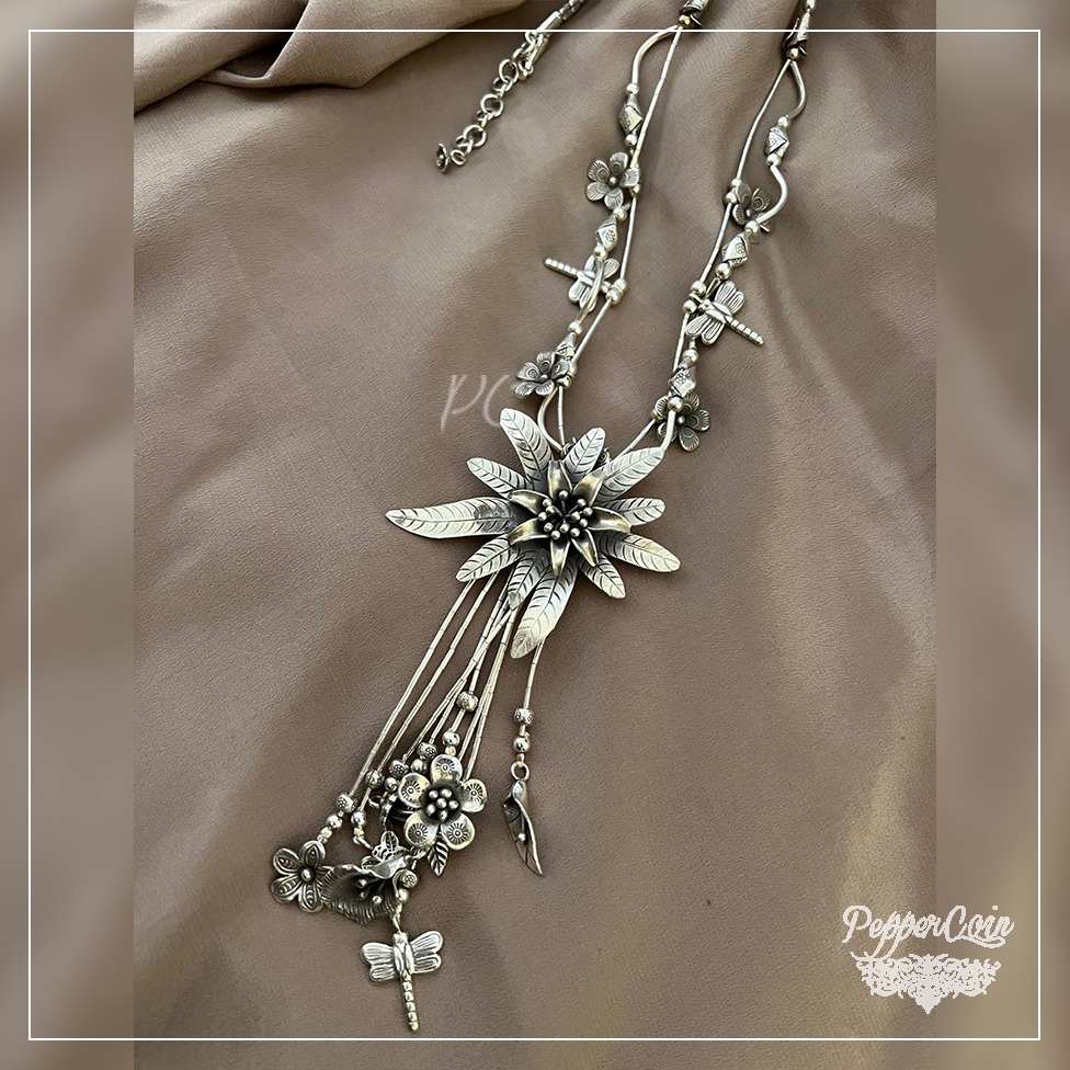 Contemporary Floral Long Neck lace, Charms definitely a head turner.