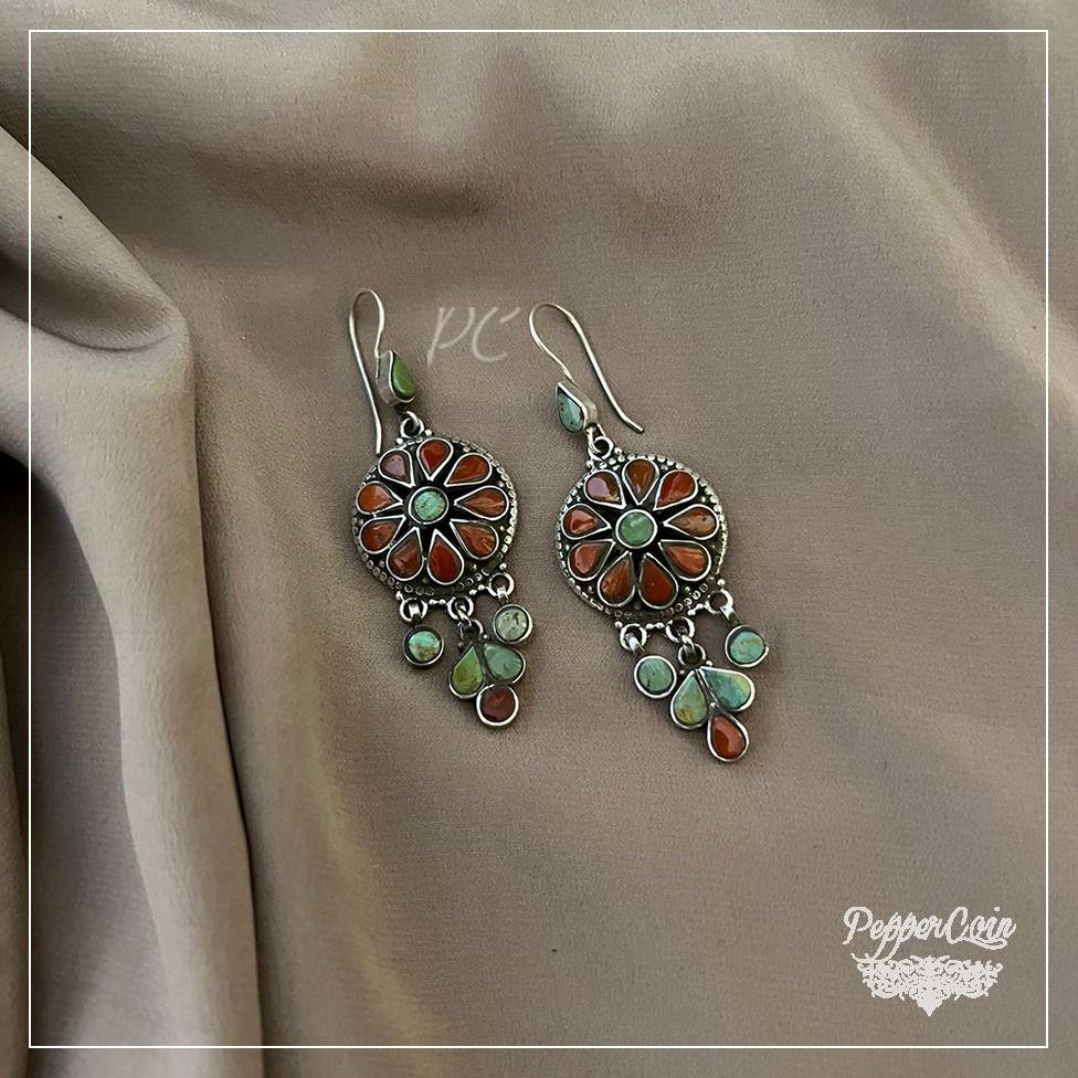 Coral and turqoise silver earrings