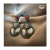 Rava Work Earrings with Beautiful Combination of Coral, Lapis, Pearl and Turquoise 92.5 Silver 31 Grams