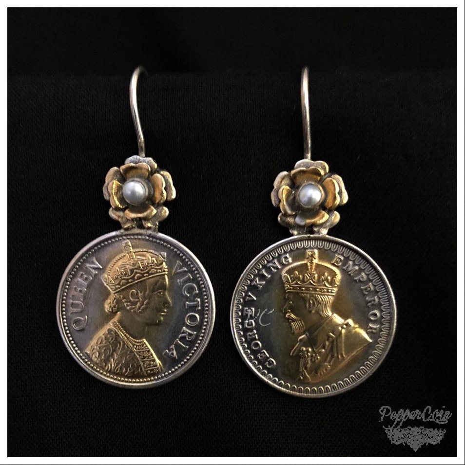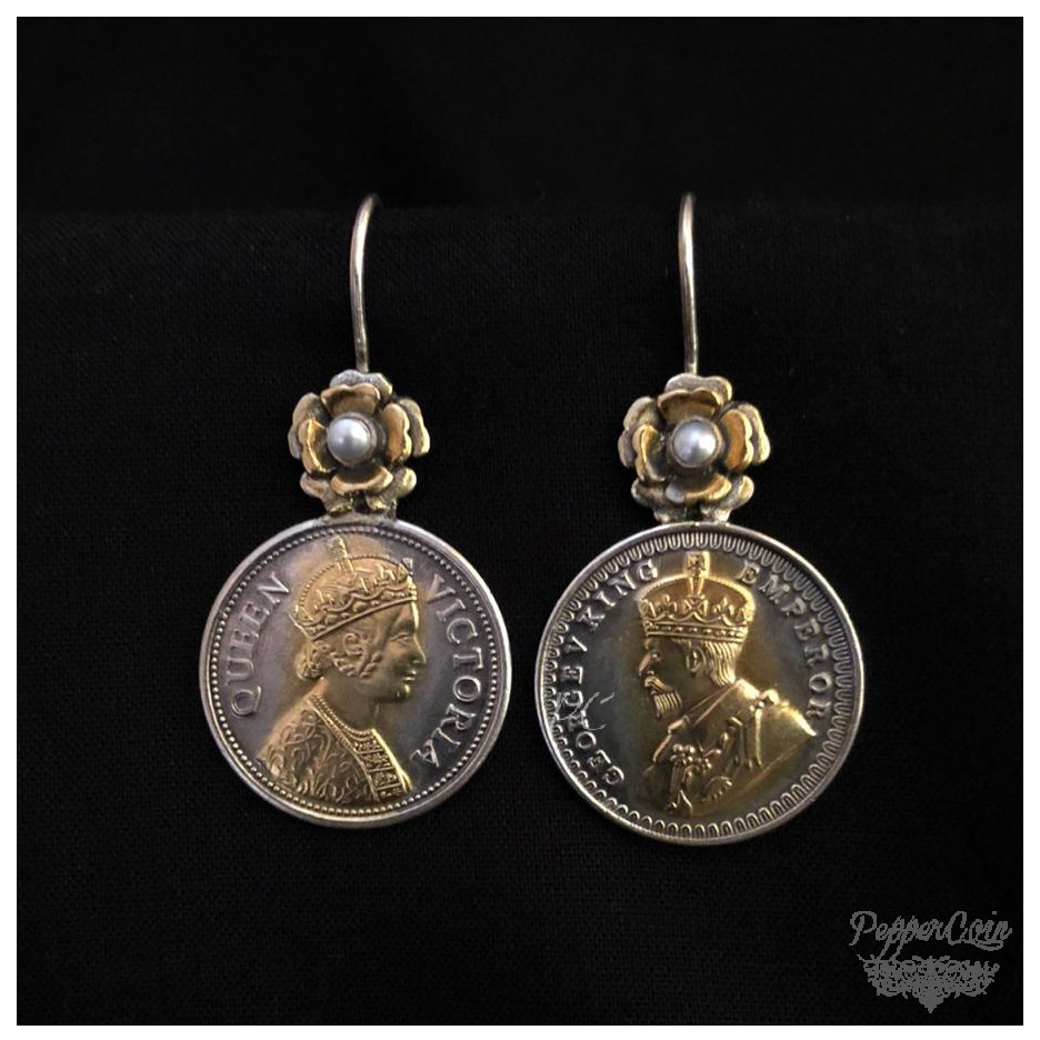 Dual Tone Victorian Earring with Pearl Flower