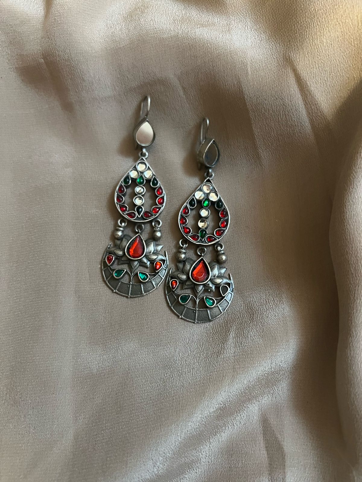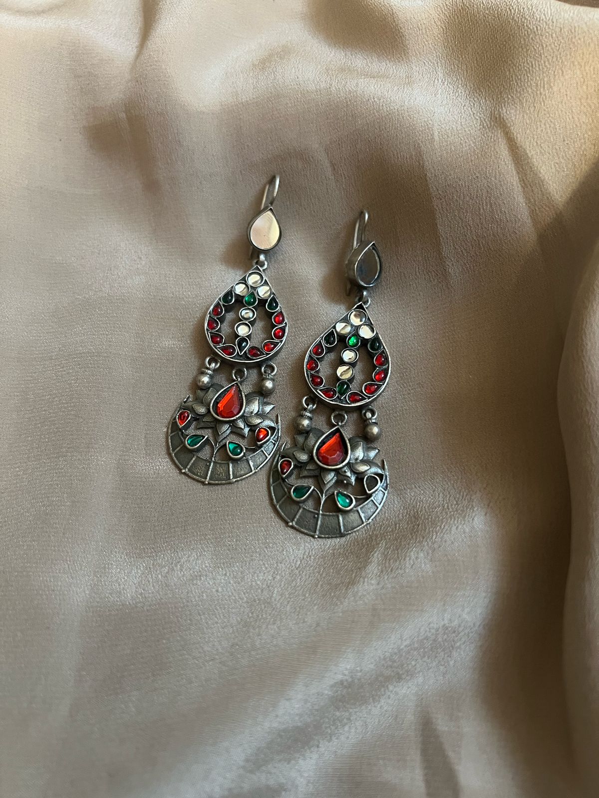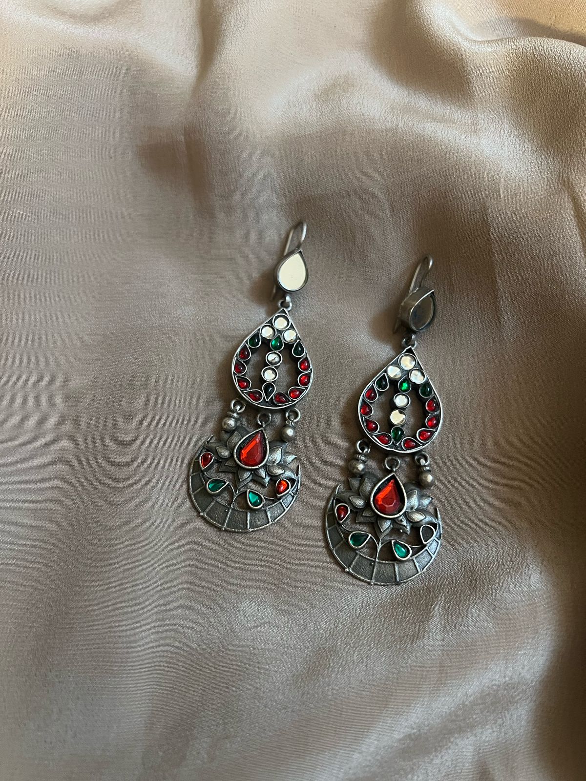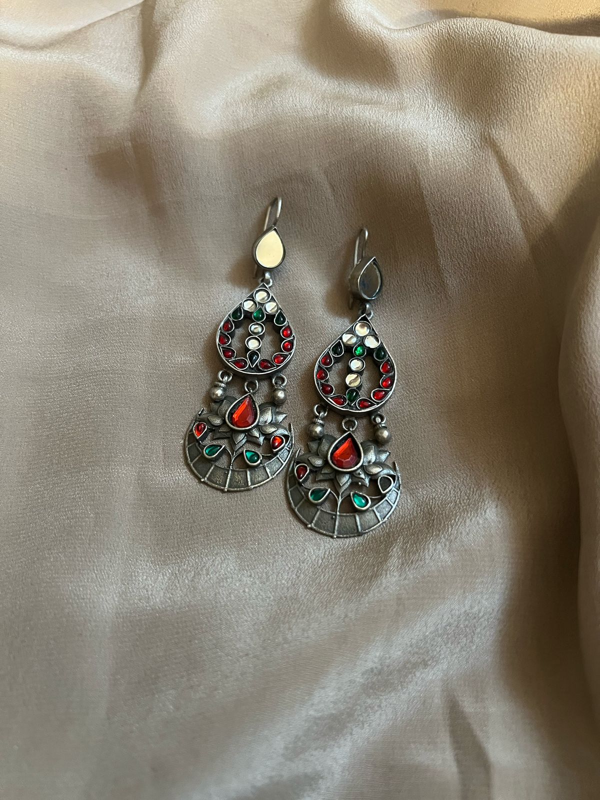 One of a kind beautiful kundan earrings set in silver.