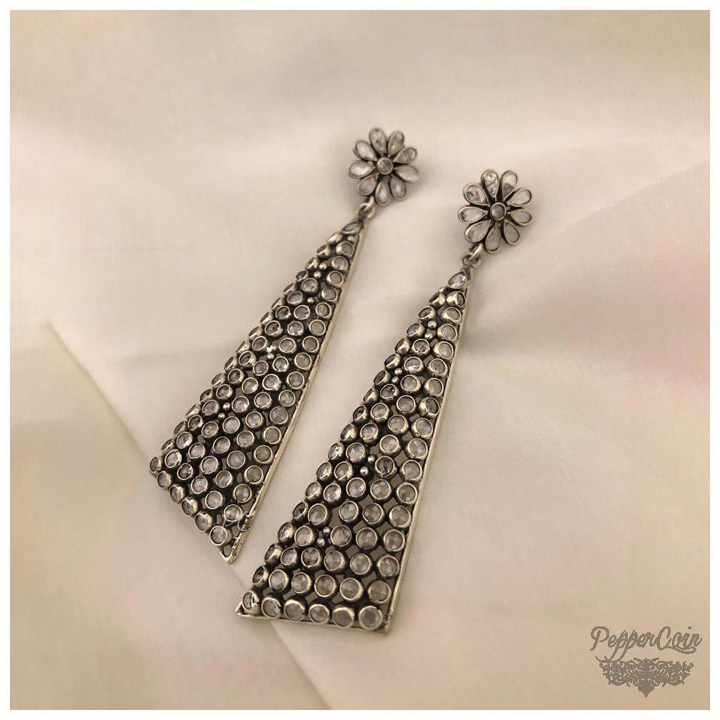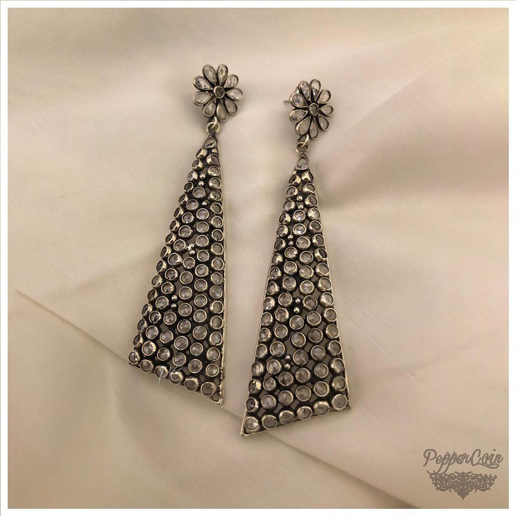 Length: 3 Inches Weight: 25.1 Gram Fastening: Stud Material: 92.5 Silver Status: Available Care : Keep away from fragrance and moisture. Sliver