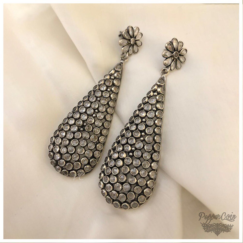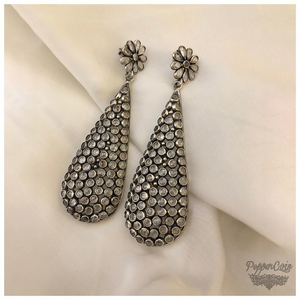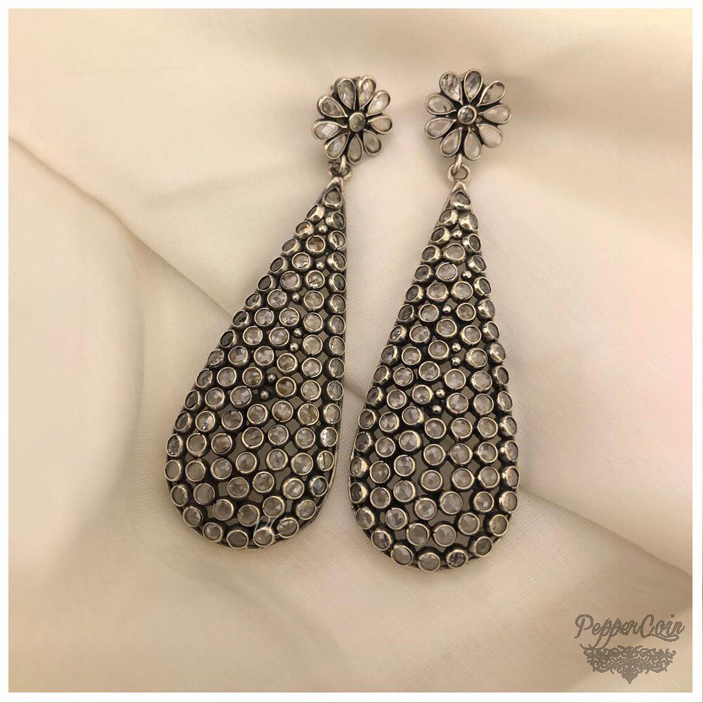 Length: 3 Inches Weight: 25.1 Gram Fastening: Stud Material: 92.5 Silver Status: Available Care : Keep away from fragrance and moisture. Sliver