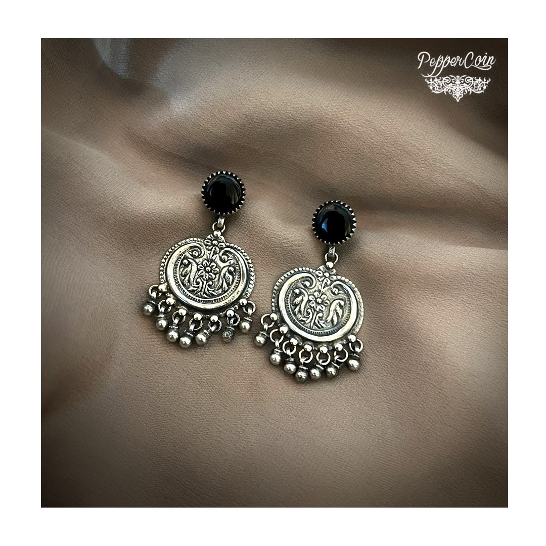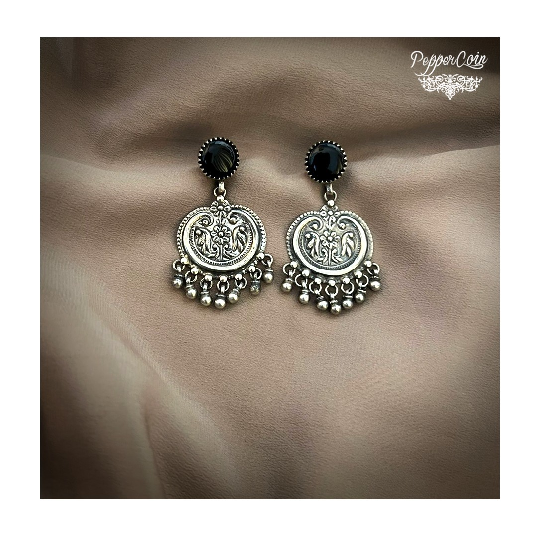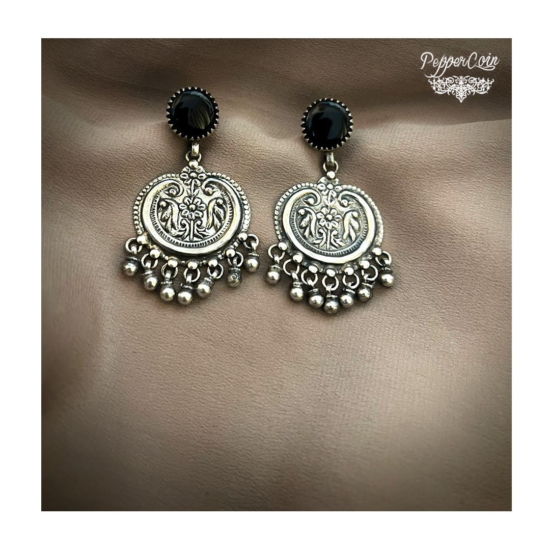 Traditional Parrot Earring with Black oxy and ghungroo
