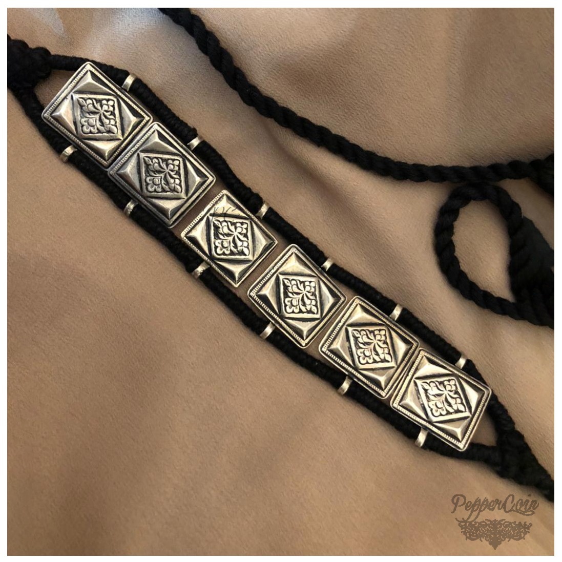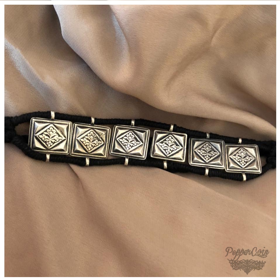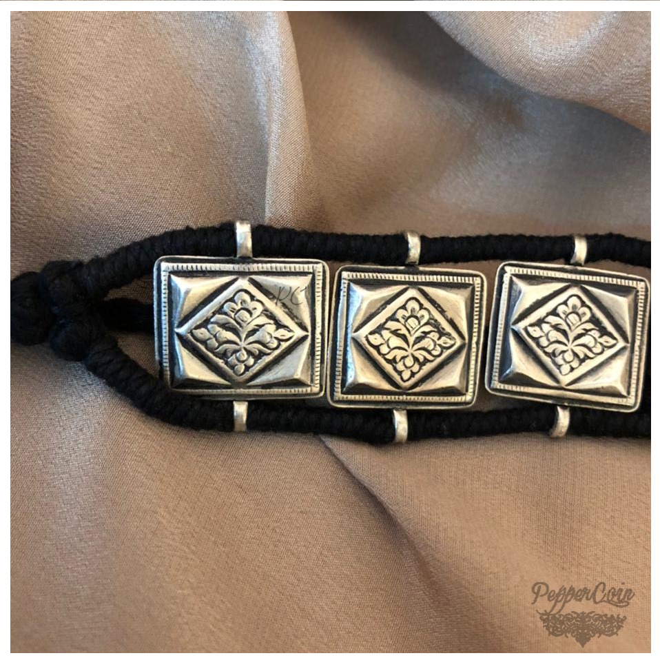 Flower work neck piece with ghungroo Material: 92.5 Silver Status: Available Length: 14.5 inches Weight: 74 grams Only for pendant you can