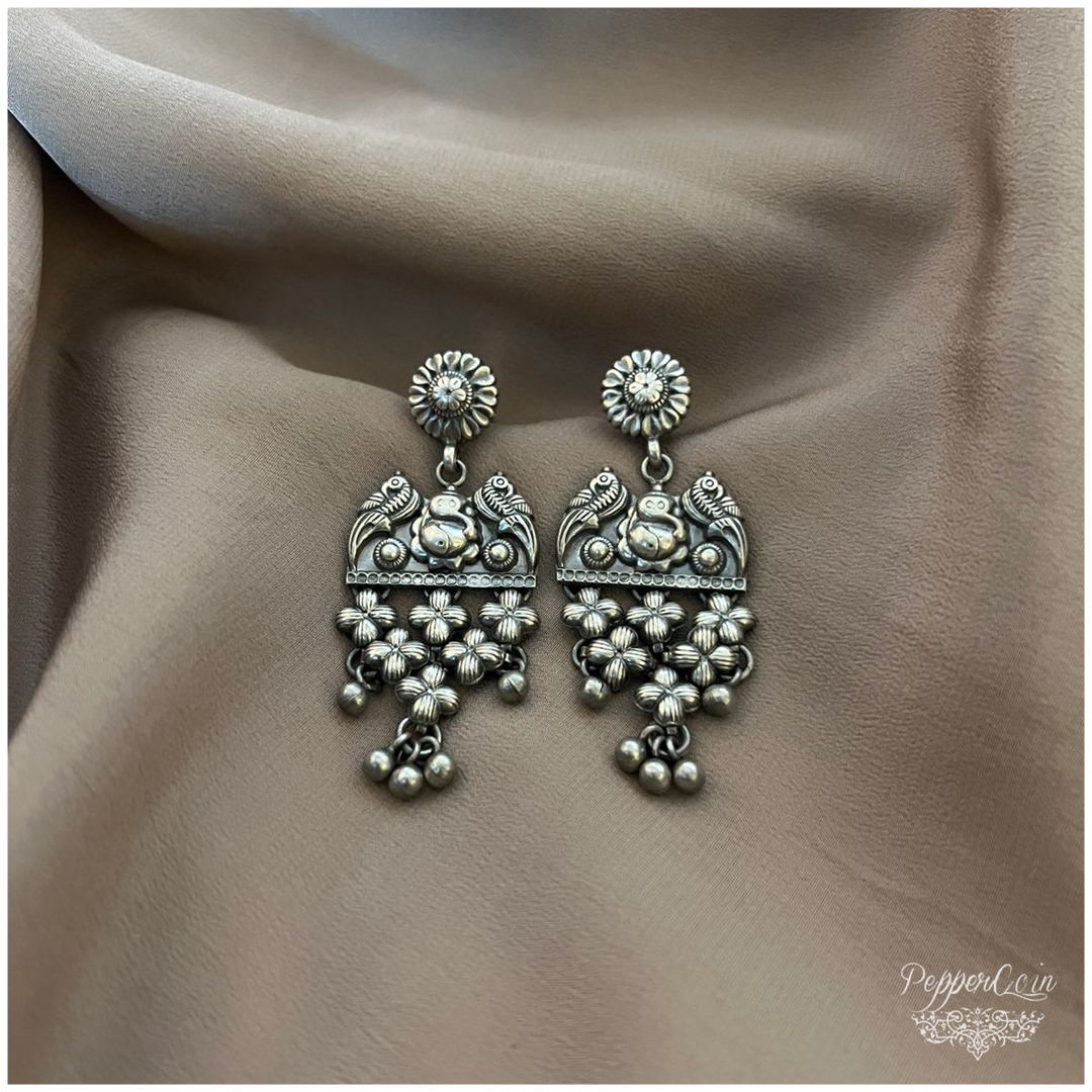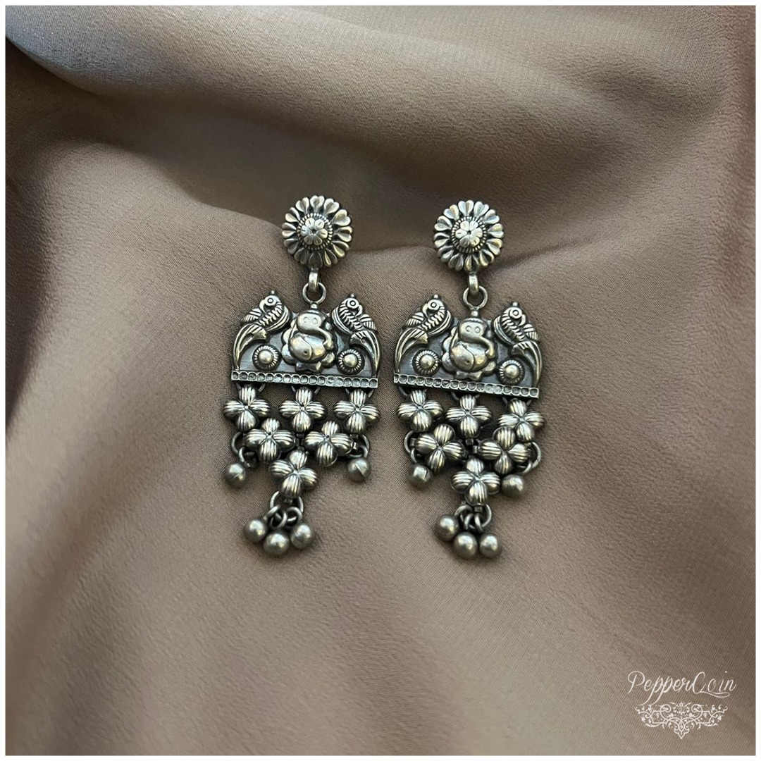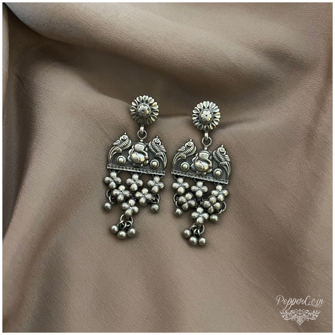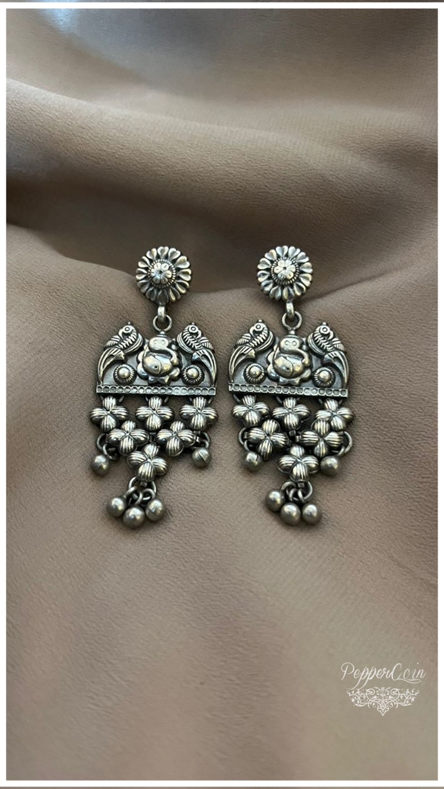 Ganesha and perrot silver earrings . Perfect doze of tradition