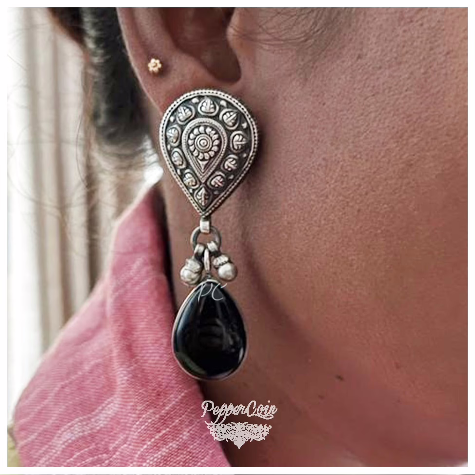 One OF a kind silver earrings with black Onyx and Ghungroo.
