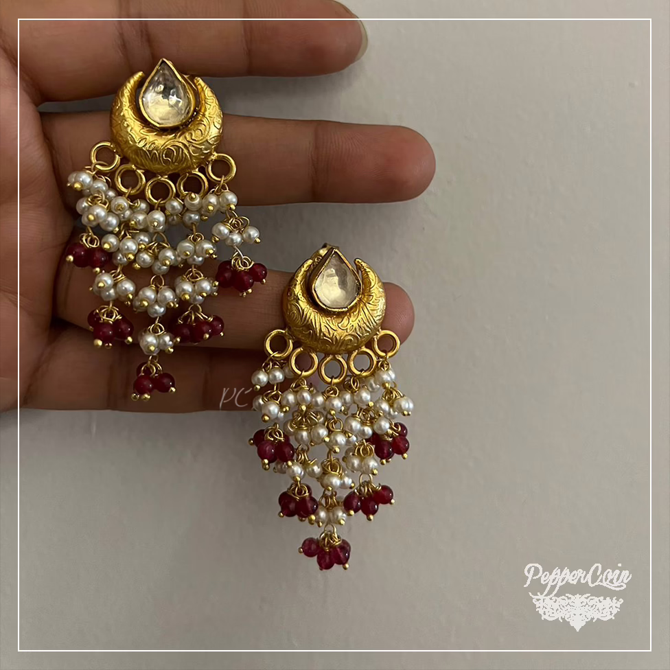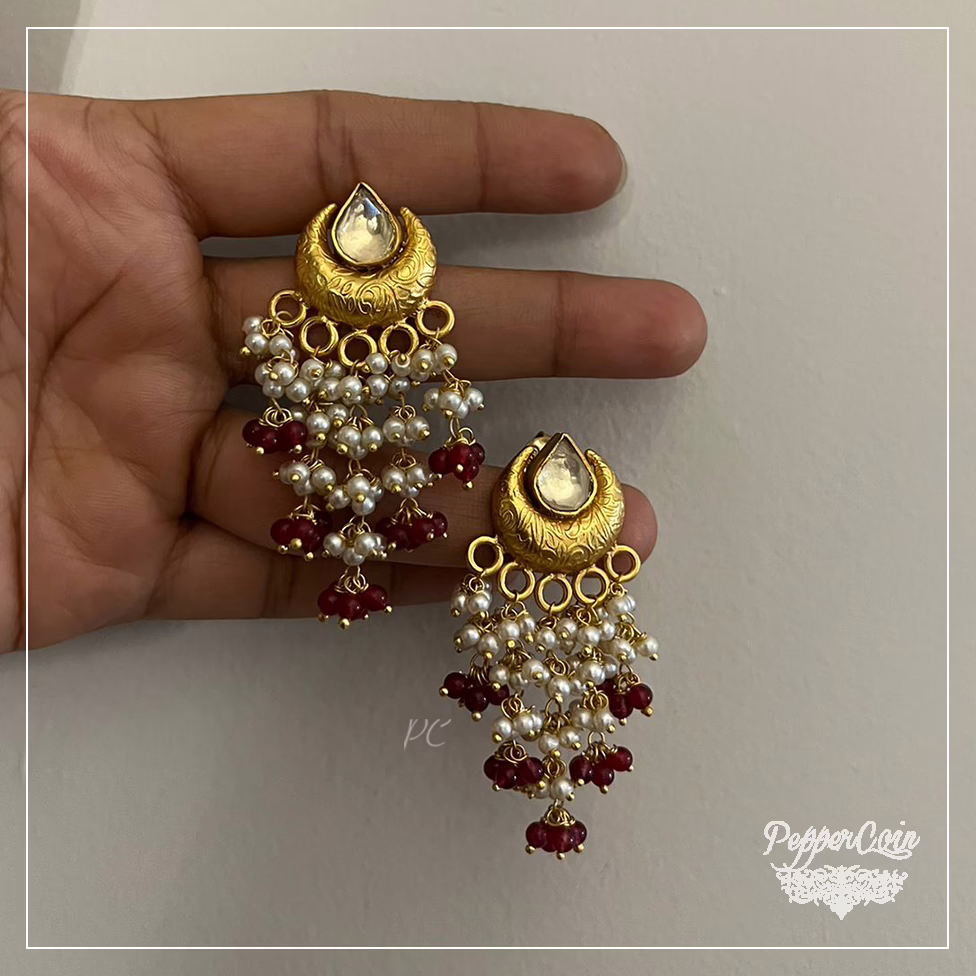 Gold Plated Golden Earrings with Fresh water pearls. Perfect for special Ocessions. Pair these with your favorite Outfit.