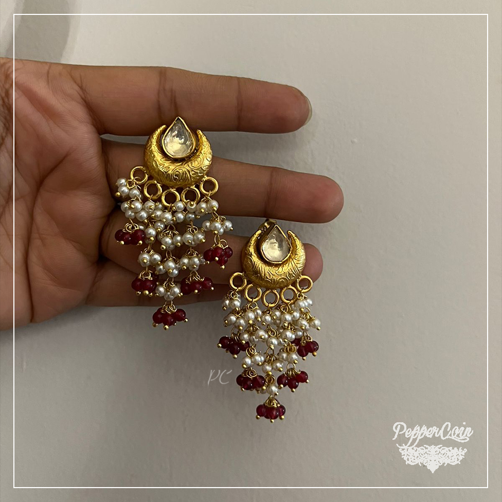Gold Plated Golden Earrings with Fresh water pearls. Perfect for special Ocessions. Pair these with your favorite Outfit.