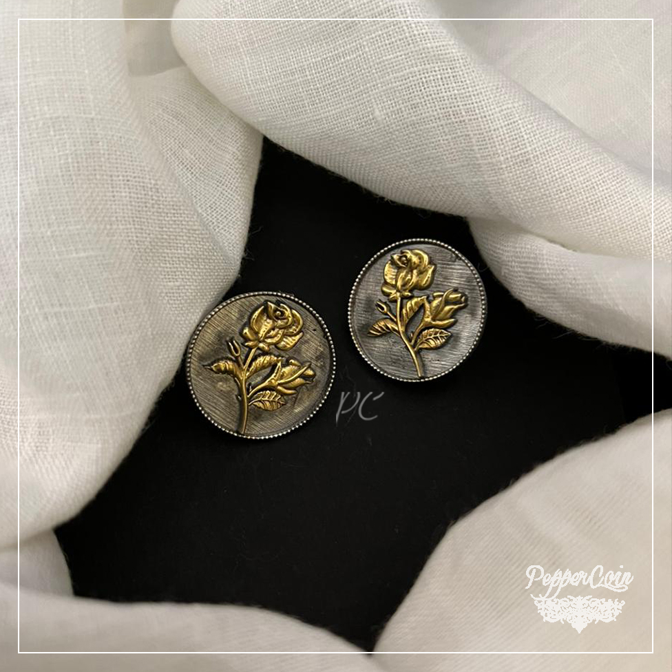 One Of a kind dual tone silver studs with beautiful floral carvings.