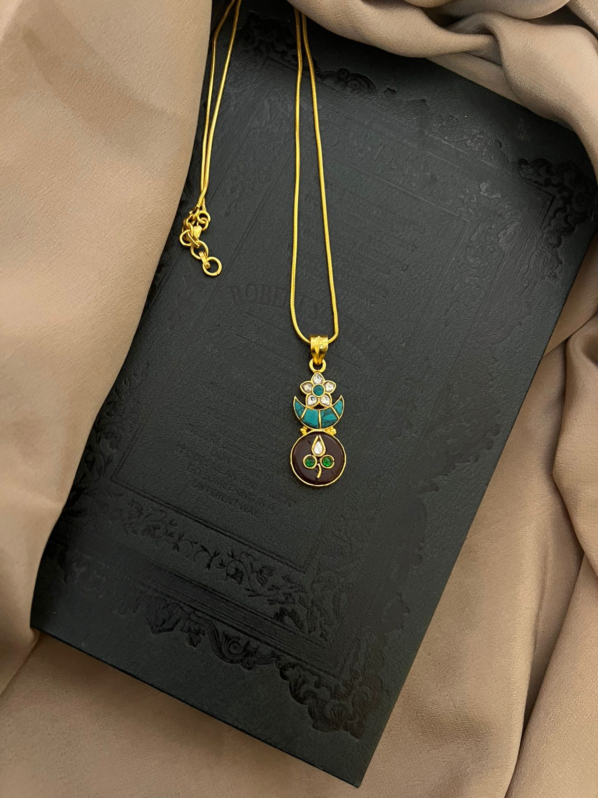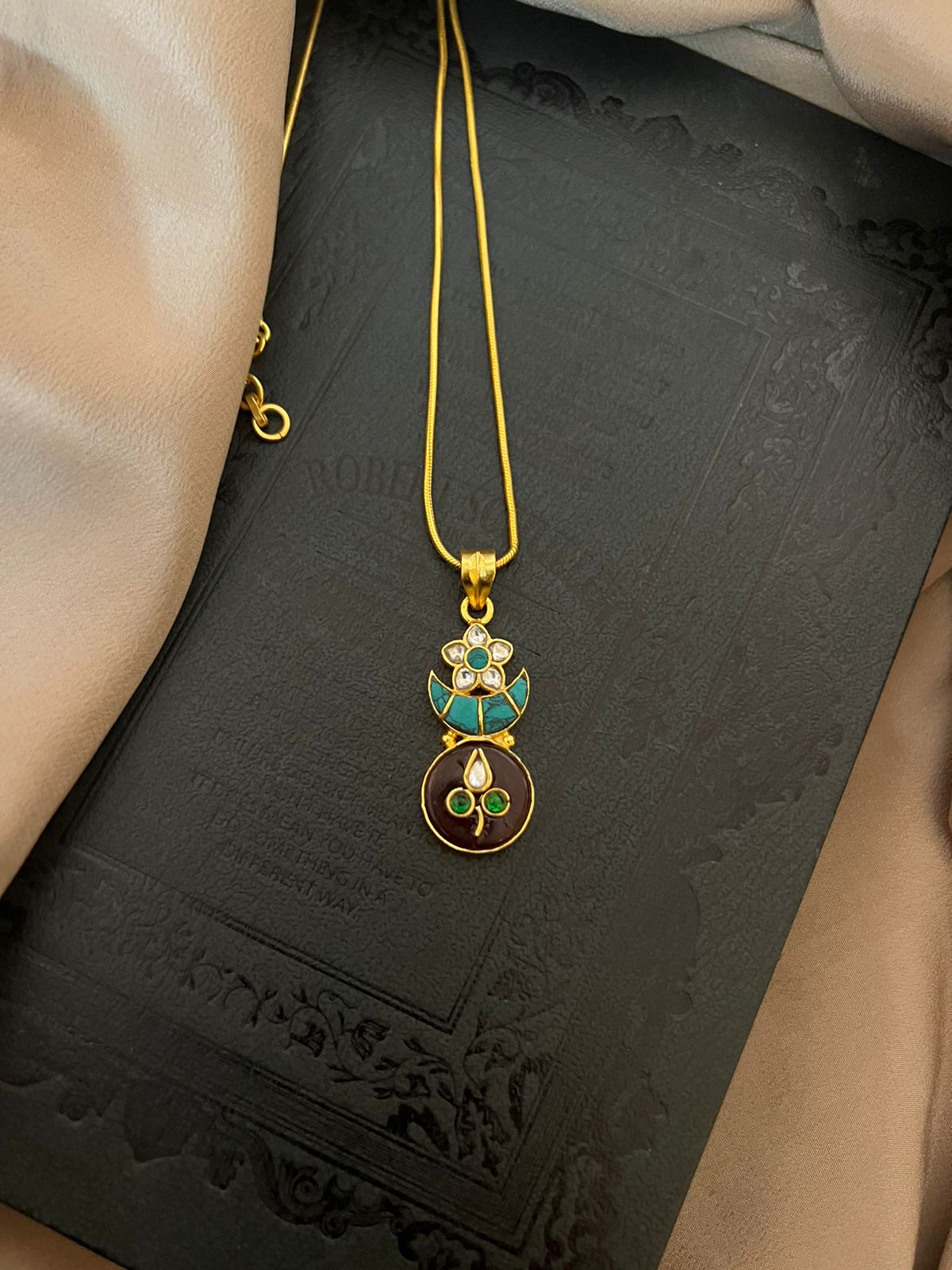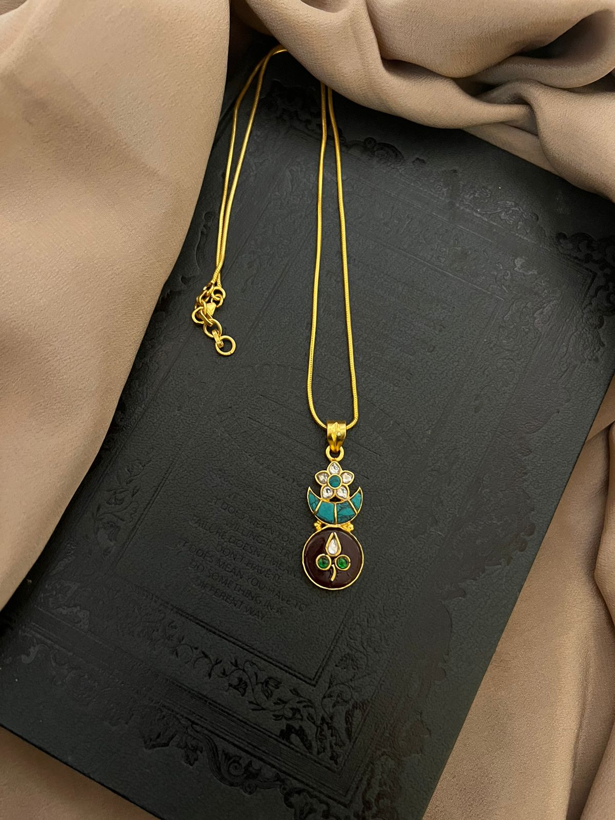 Gold Plated Tawiz pendant with Kundan, comes with single Hasli Pendant’s Length: 4cm Pendant’s Width: 6 cm Material: 92.5 Silver Status: Available