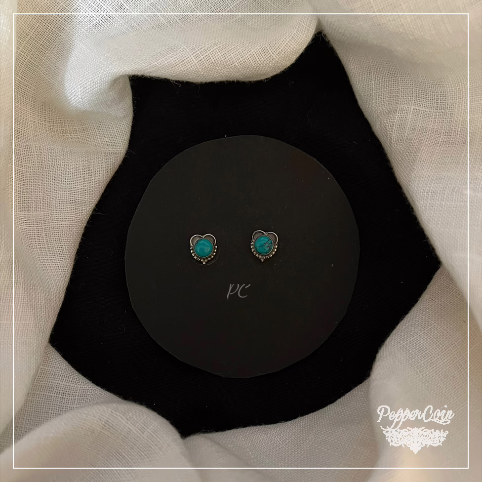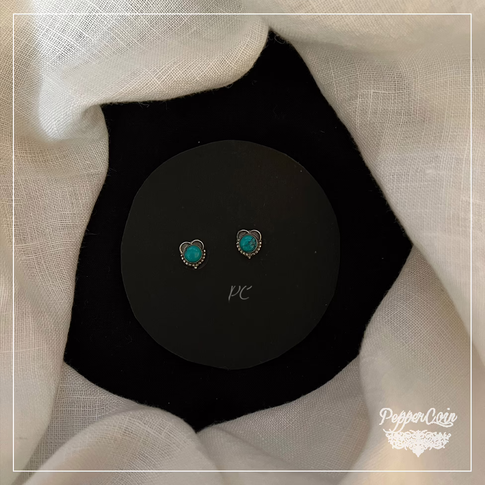 Pearls with turquoise Studs handcrafted in Silver.