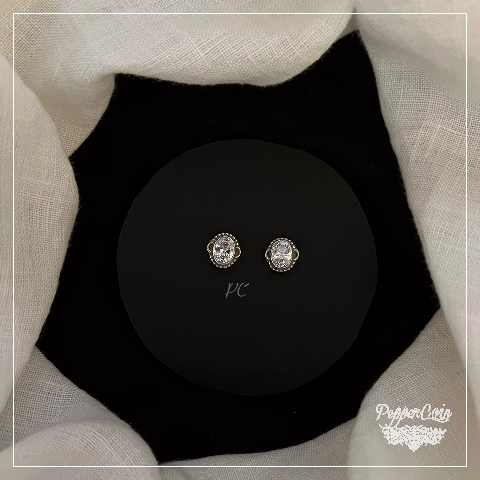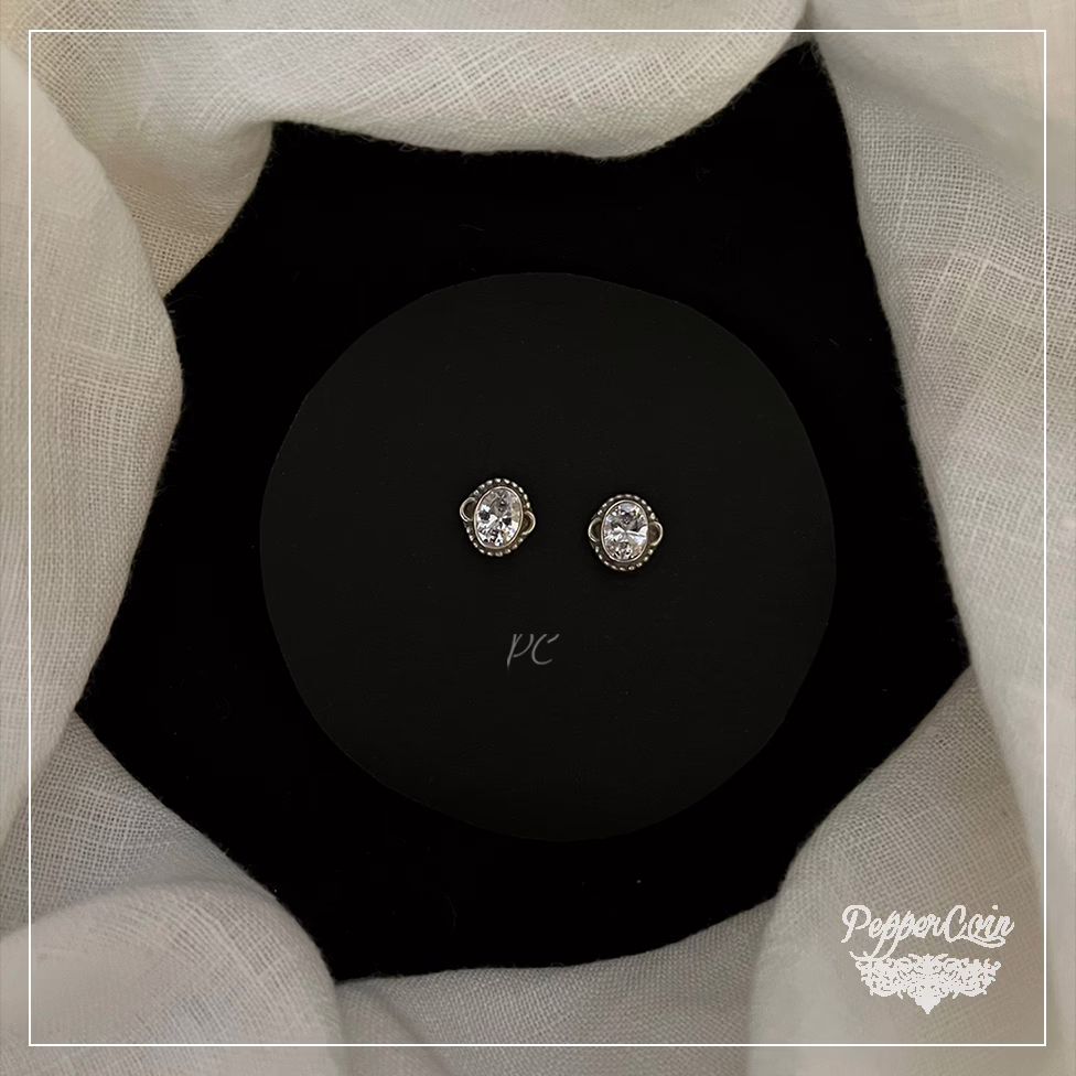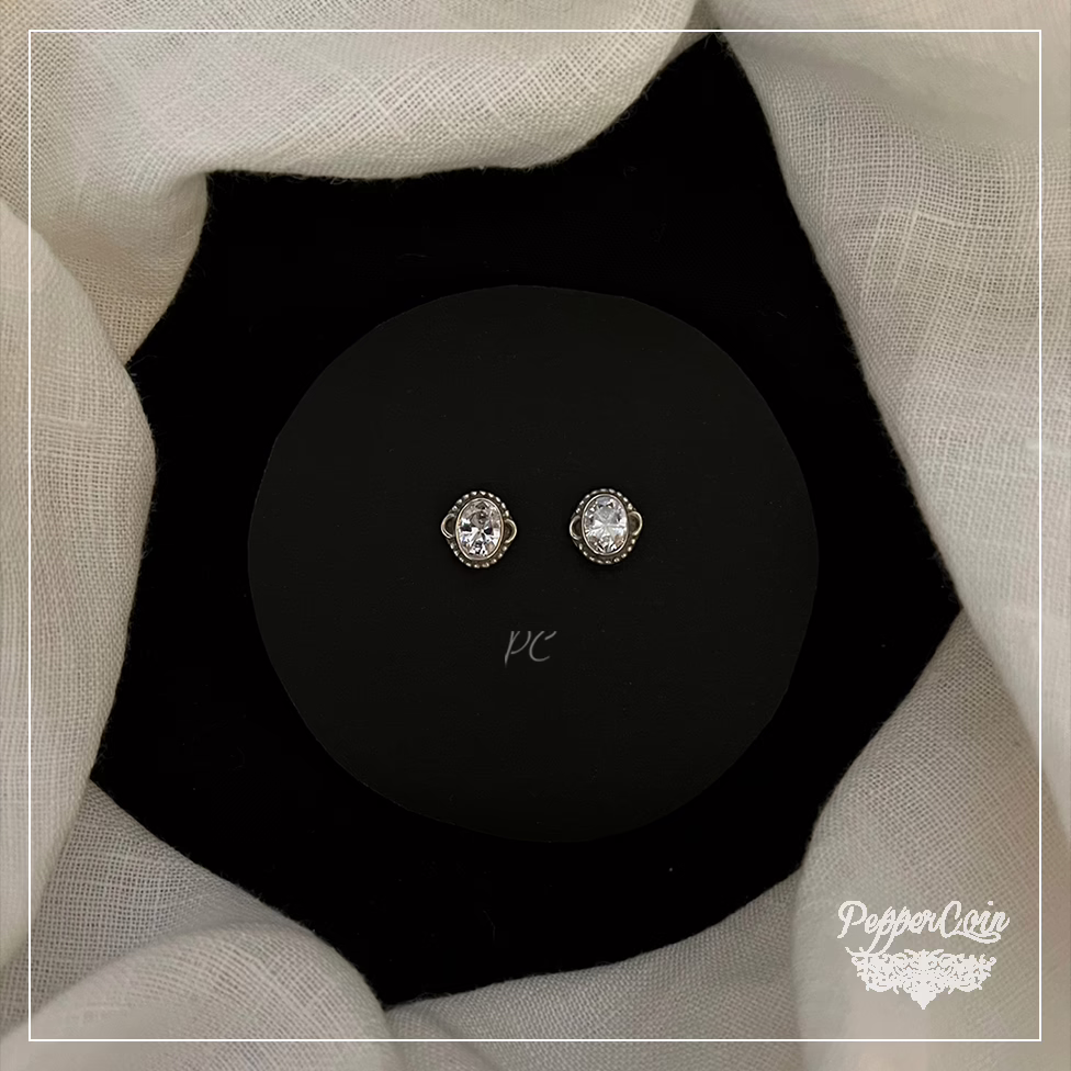 Zircon Oval Studs Hand Crafted In Silver.