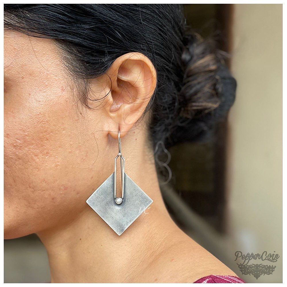 One Of a kind geometric Pattern Earrings in Silver 92.5 Silver Fastening: Hooks Weight: 14.5 Gram Length: 7.4 Cm Width: 4.7 Cm